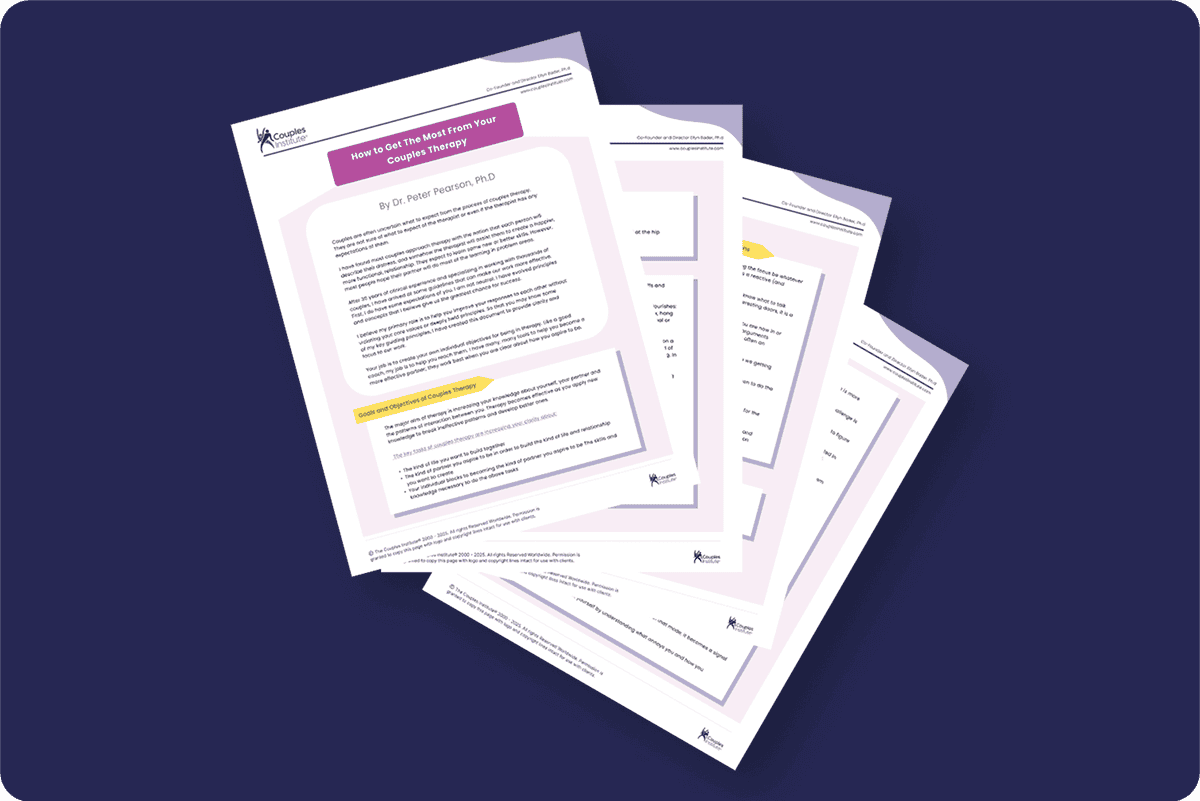 Most therapy falls short because couples lack “the why” AND the compelling reasons to work. This handout helps couples clarify 2 of the most important drivers of the work ahead.